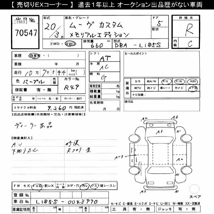 DAIHATSU MOVE 4WD CUSTOM MEMORIAL EDITION - лот 70547