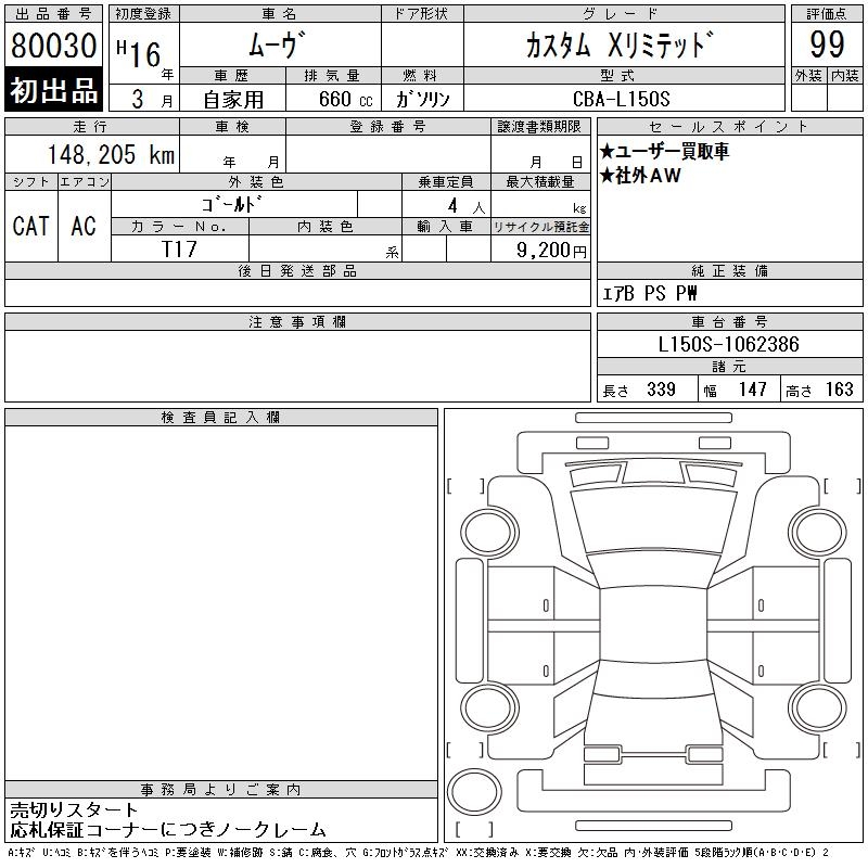 DAIHATSU MOVE CUSTOM X LIMITED - лот 80030
