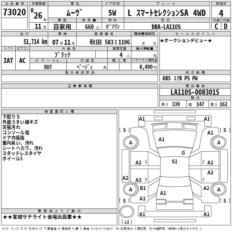 DAIHATSU MOVE L SMART SELECTION SA 4WD - лот 73020
