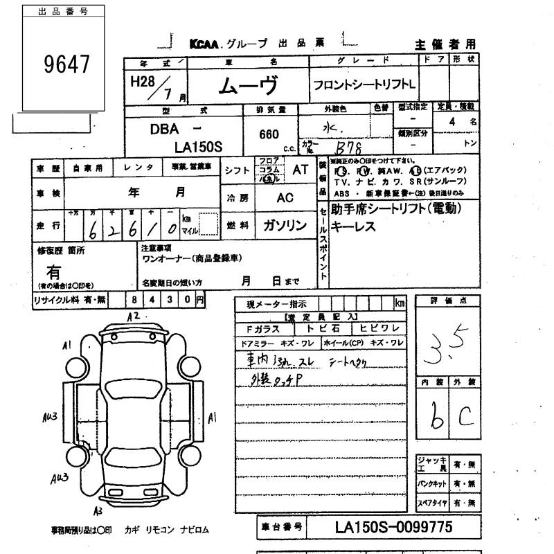 DAIHATSU MOVE FRONT SEAT LIFT L - лот 9647