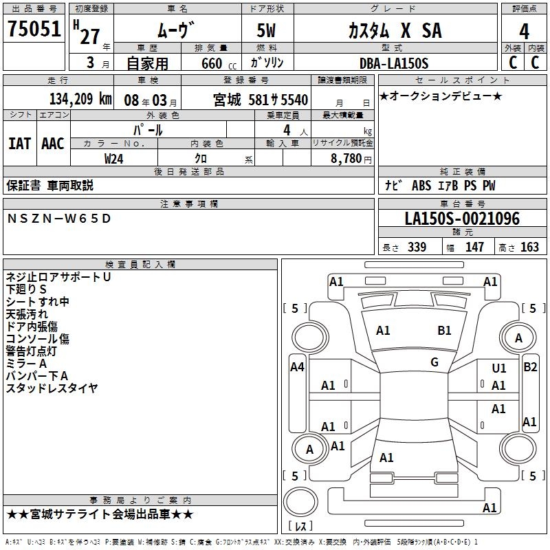 DAIHATSU MOVE CUSTOM X SA - лот 75051