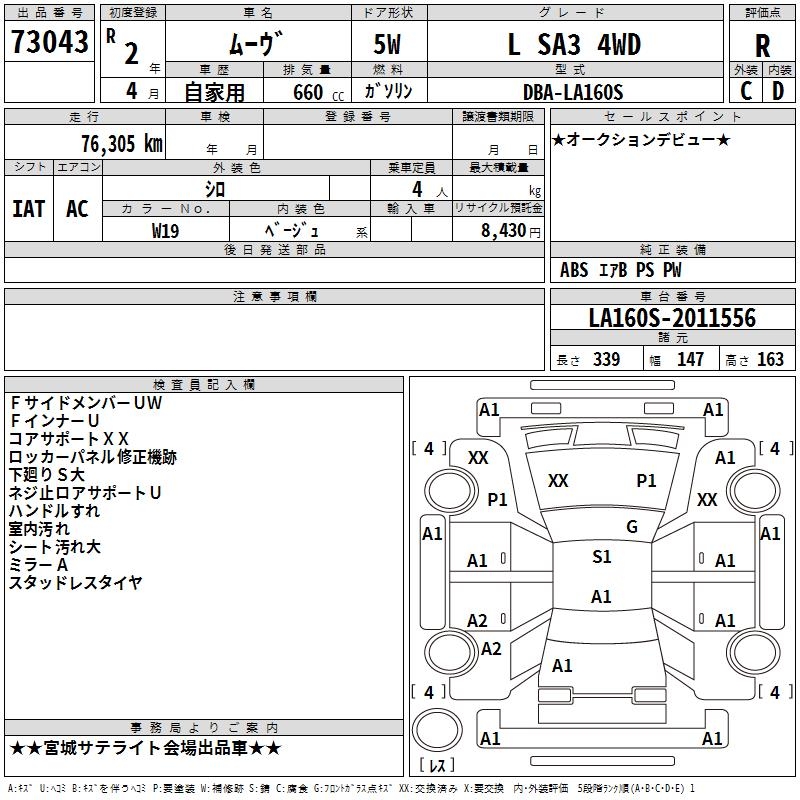 DAIHATSU MOVE L SA3 4WD - лот 73043
