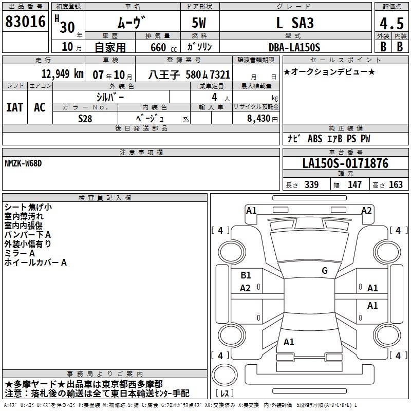 DAIHATSU MOVE L SA3 - лот 83016