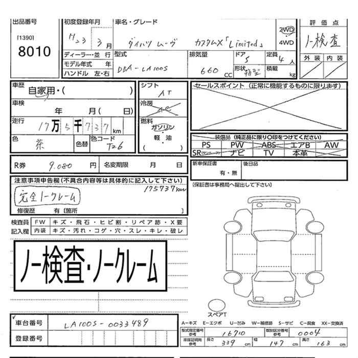DAIHATSU MOVE CUSTOM X LTD 2WD - лот 8010