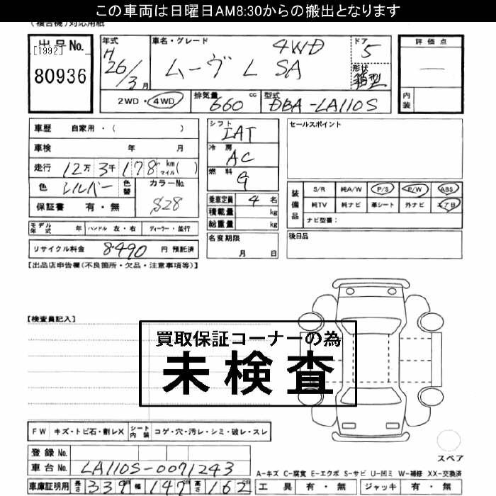 DAIHATSU MOVE 4WD L SA - лот 80936