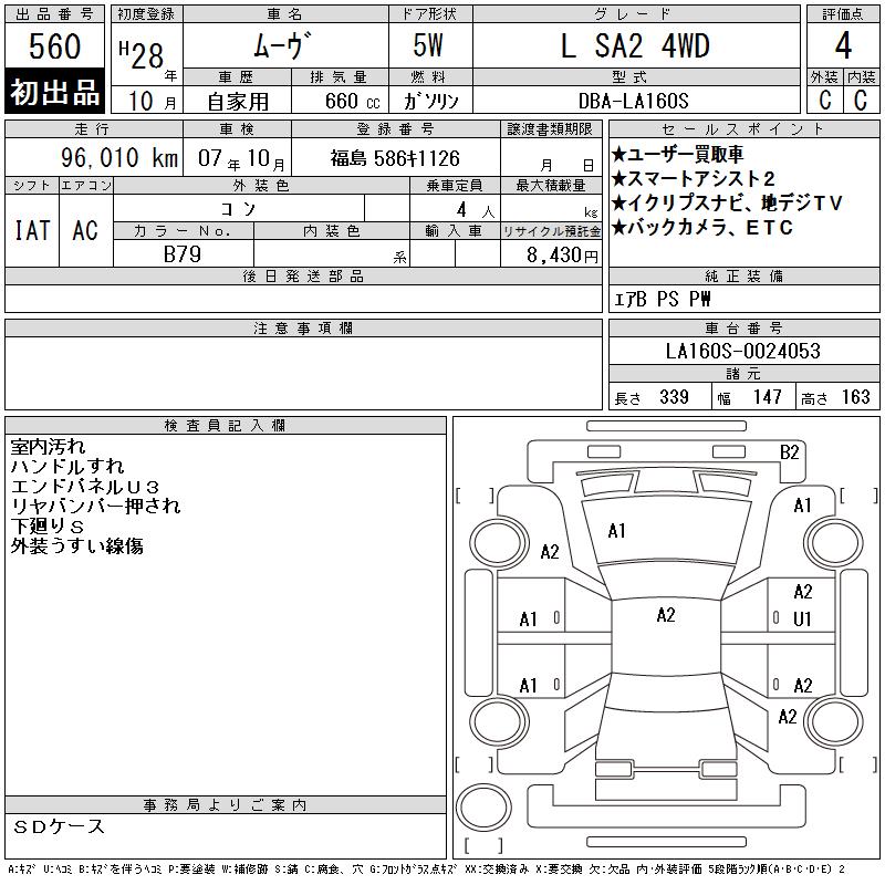 DAIHATSU MOVE L SA2 4WD - лот 560