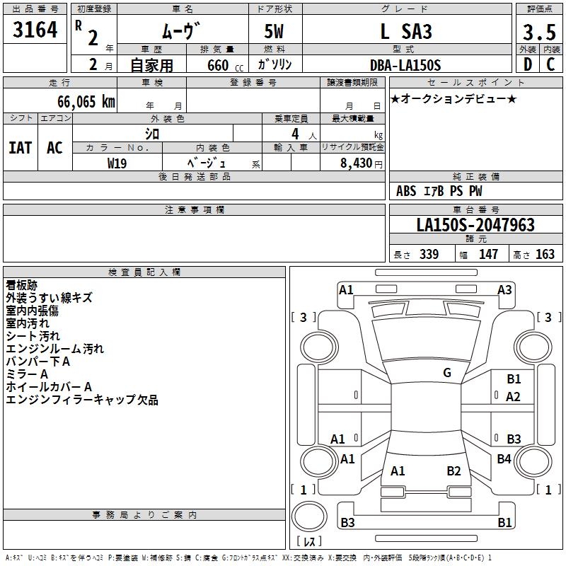 DAIHATSU MOVE L SA3 - лот 3164
