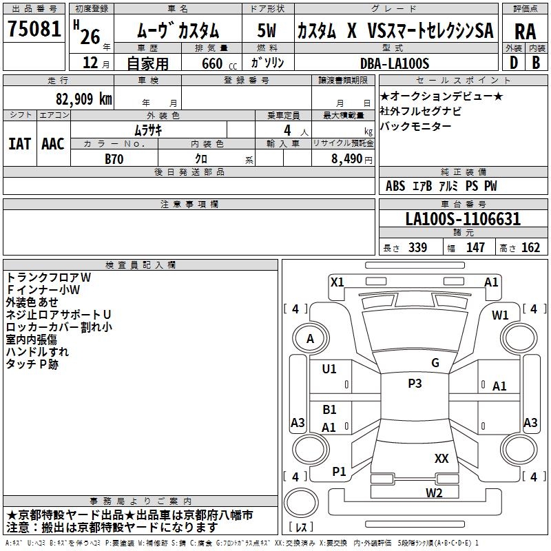 DAIHATSU MOVE CUSTOM X VS SMART SELECT NSA - лот 75081