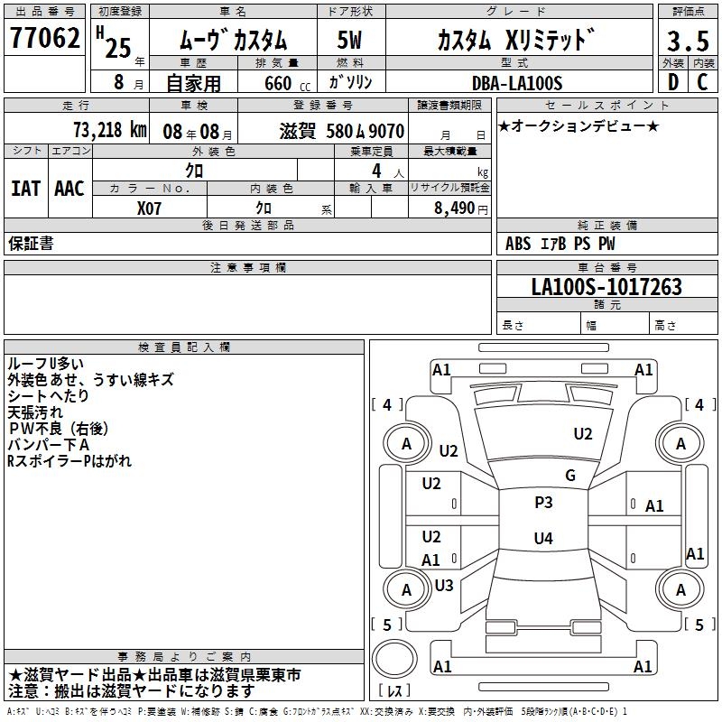 DAIHATSU MOVE CUSTOM X LIMITED - лот 77062