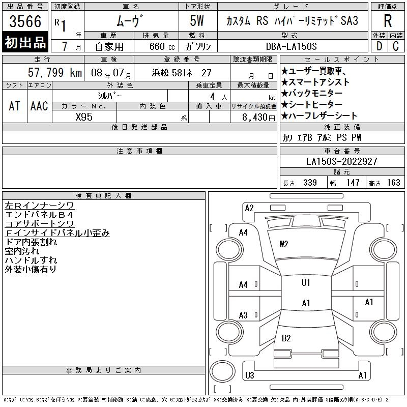 DAIHATSU MOVE CUSTOM RS HYPER LIMITED SA3 - лот 3566