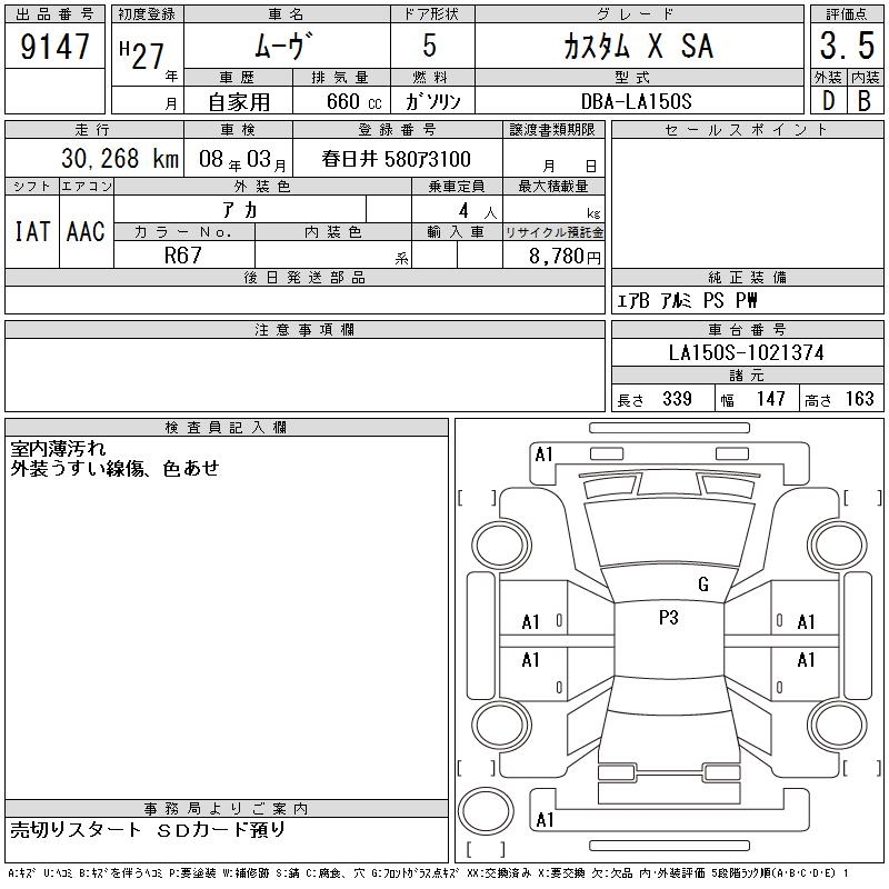 DAIHATSU MOVE CUSTOM X SA - лот 9147