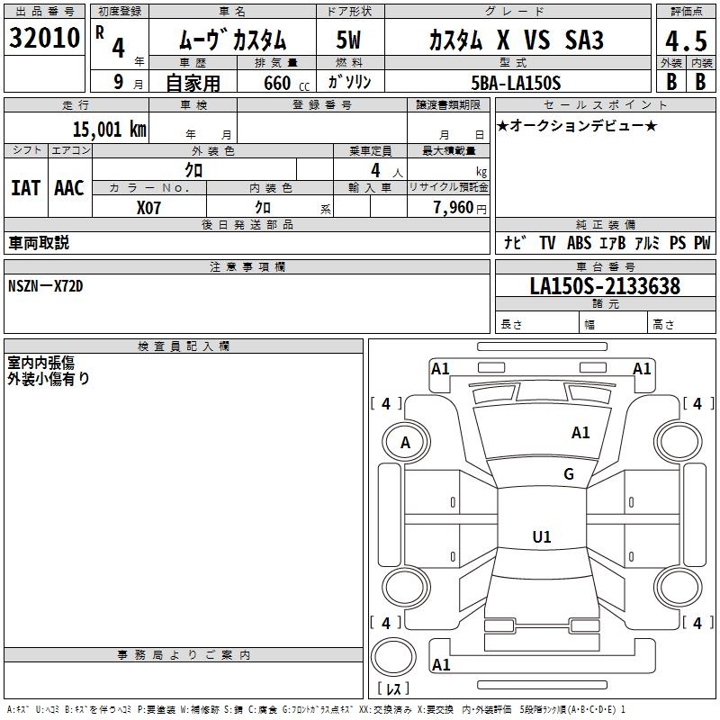 DAIHATSU MOVE CUSTOM X VS SA3 - лот 32010