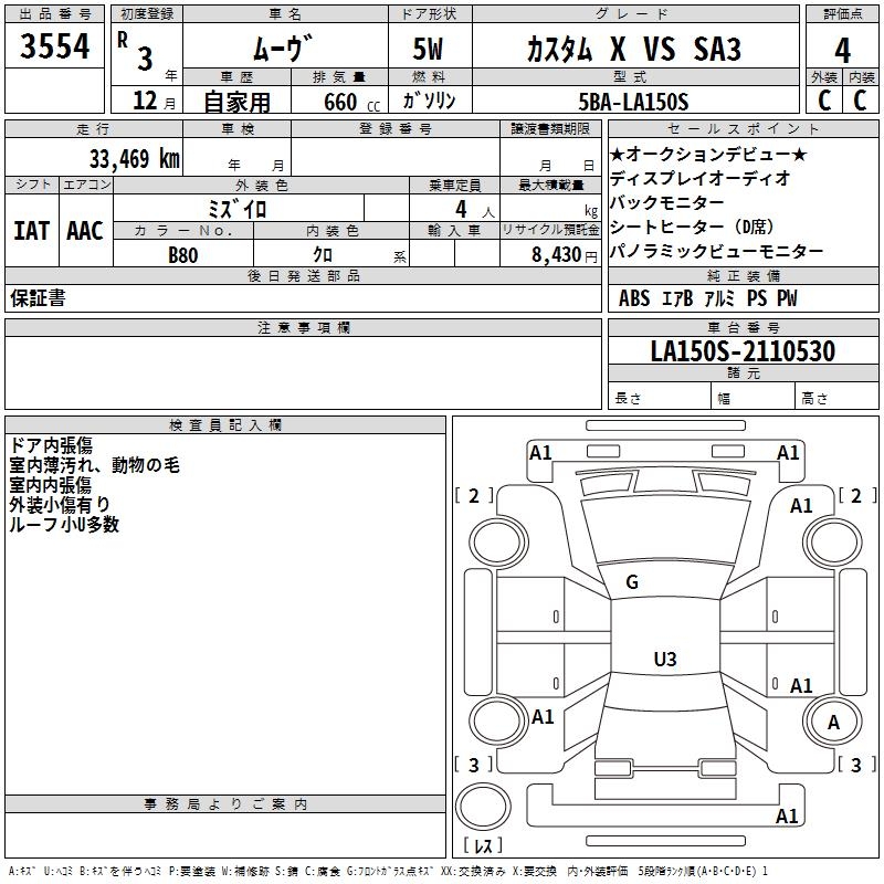 DAIHATSU MOVE CUSTOM X VS SA3 - лот 3554