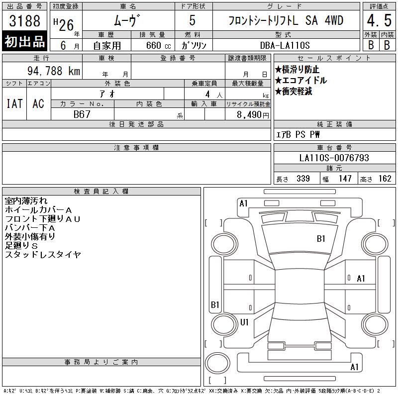 DAIHATSU MOVE FRONT SEAT LIFT L SA 4WD - лот 3188