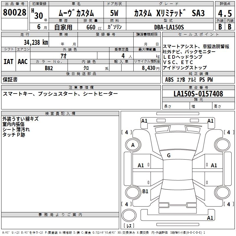 DAIHATSU MOVE CUSTOM X LIMITED SA3 - лот 80028