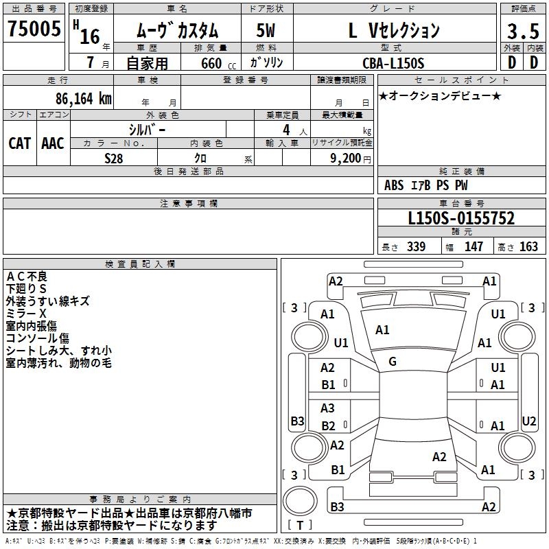 DAIHATSU MOVE L V SELECTION - лот 75005