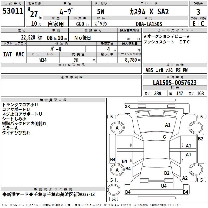 DAIHATSU MOVE CUSTOM X SA2 - лот 53011