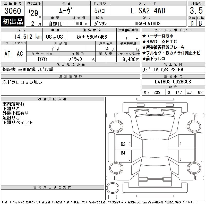 DAIHATSU MOVE L SA2 4WD - лот 3060