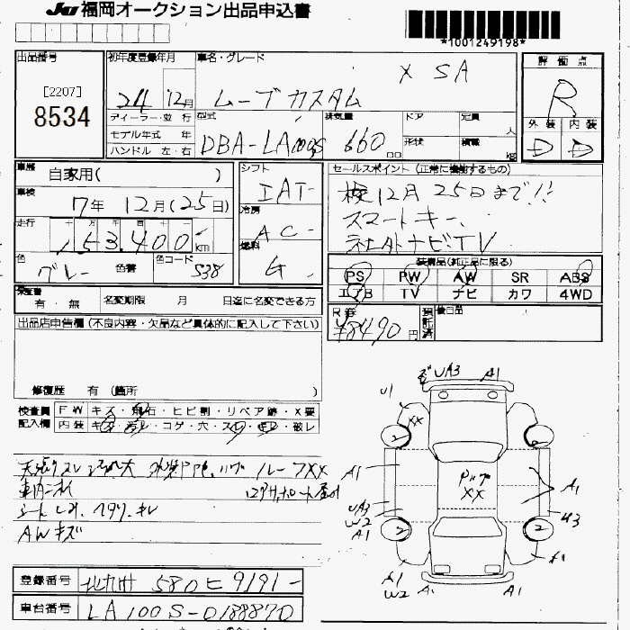 DAIHATSU MOVE CUSTOM X SA - лот 8534