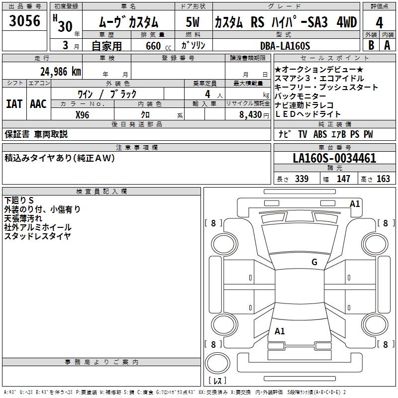 DAIHATSU MOVE CUSTOM RS HYPER SA3 4WD - лот 3056