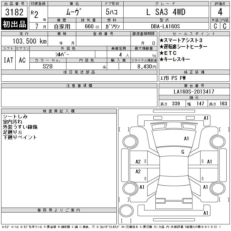 DAIHATSU MOVE L SA3 4WD - лот 3182
