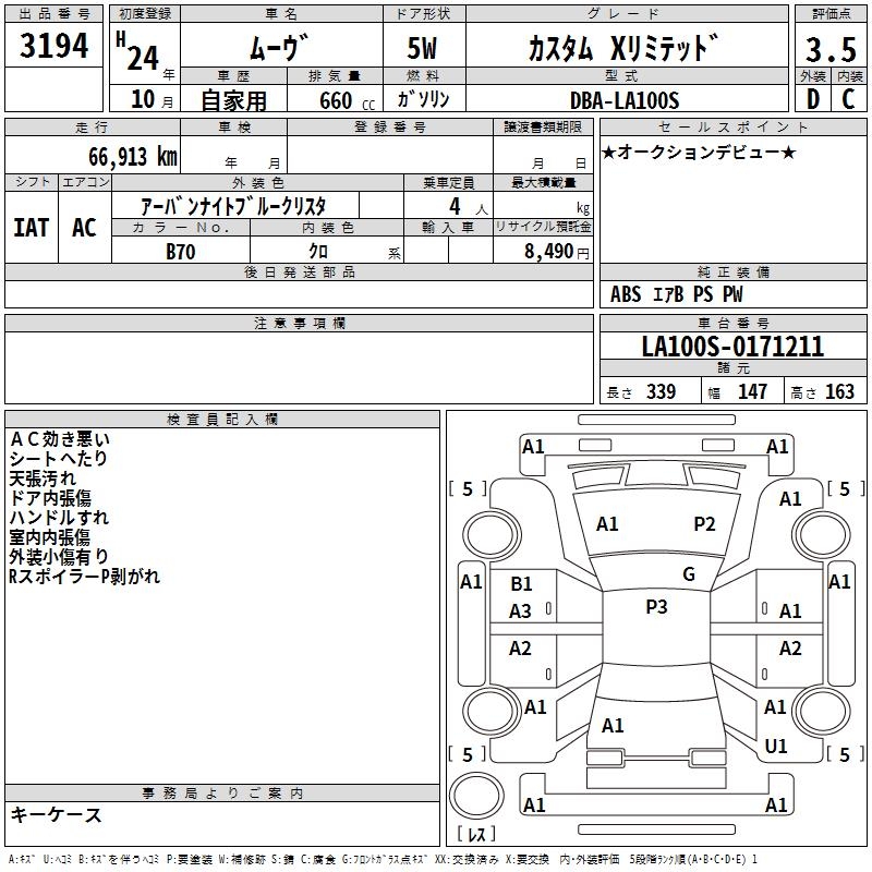 DAIHATSU MOVE CUSTOM X LIMITED - лот 3194