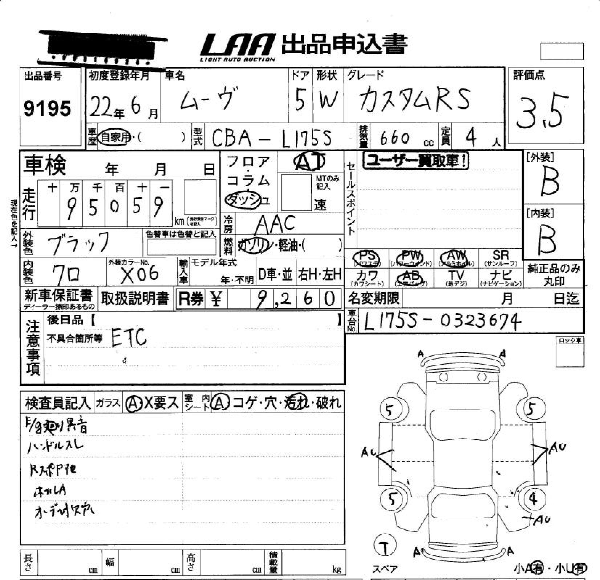 DAIHATSU MOVE CUSTOM RS - лот 9195