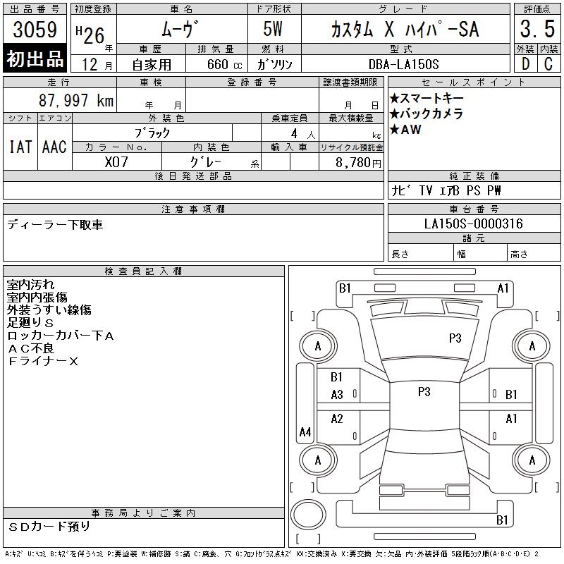 DAIHATSU MOVE CUSTOM X HYPER SA - лот 3059