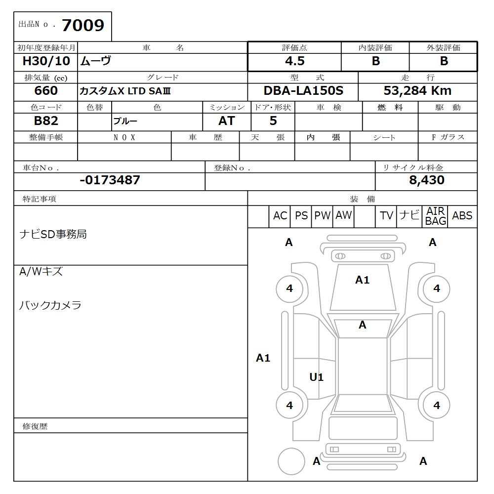 DAIHATSU MOVE CUSTOM X LTD SA. - лот 7009