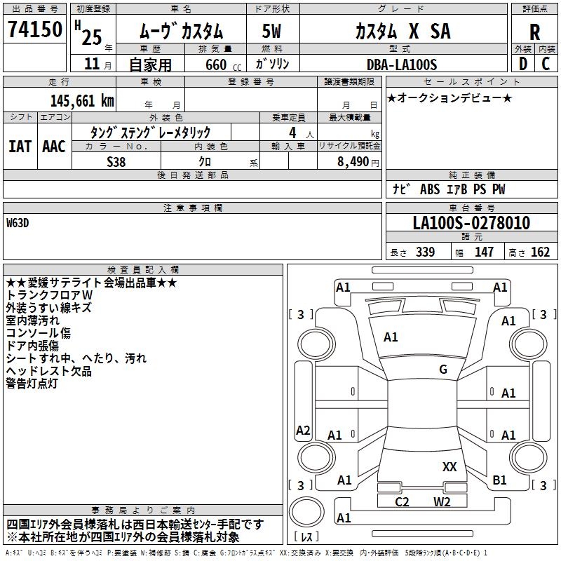 DAIHATSU MOVE CUSTOM X SA - лот 74150