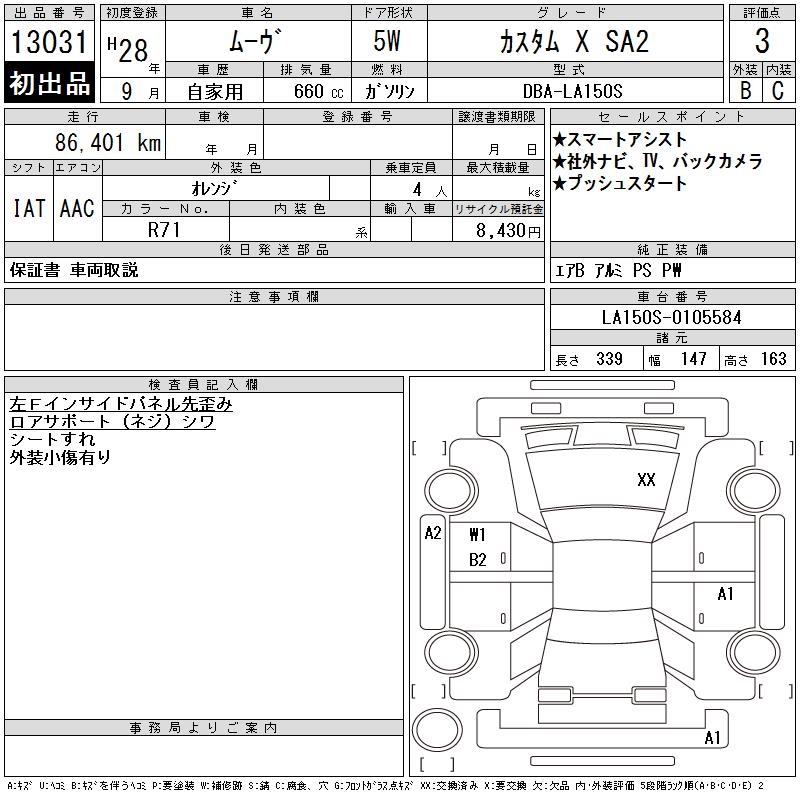DAIHATSU MOVE CUSTOM X SA2 - лот 13031