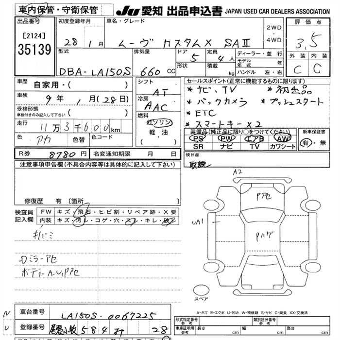 DAIHATSU MOVE CUSTOM ) X SA2 - лот 35139