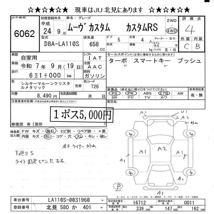 DAIHATSU MOVE 4WD CUSTOM RS - лот 6062