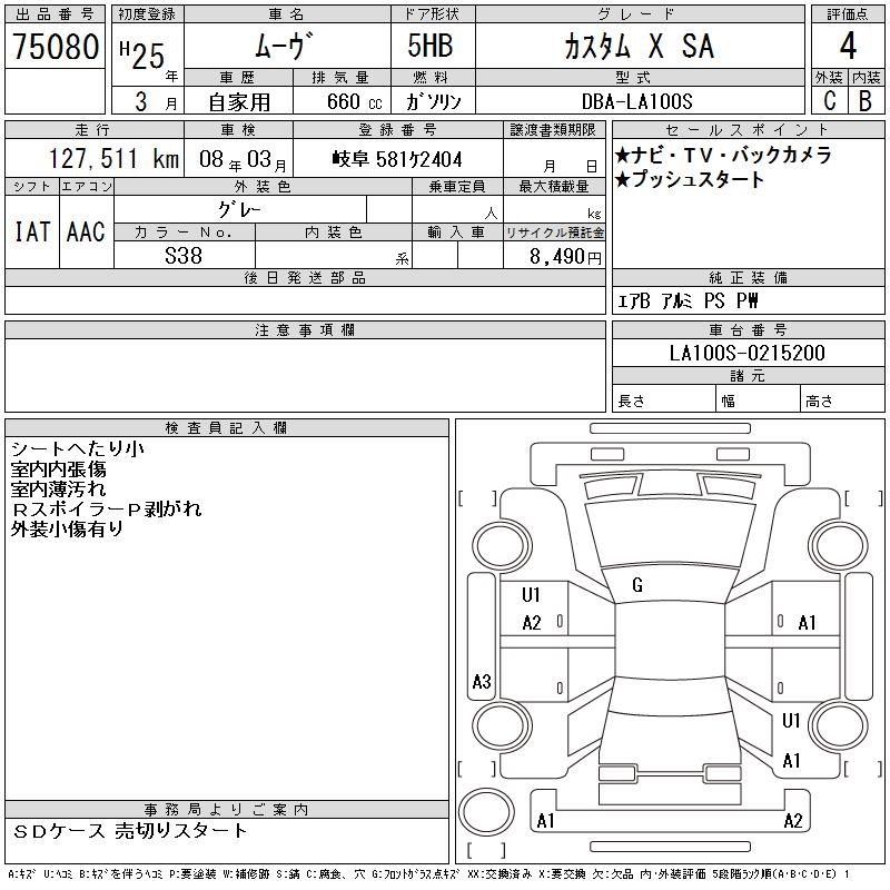 DAIHATSU MOVE CUSTOM X SA - лот 75080