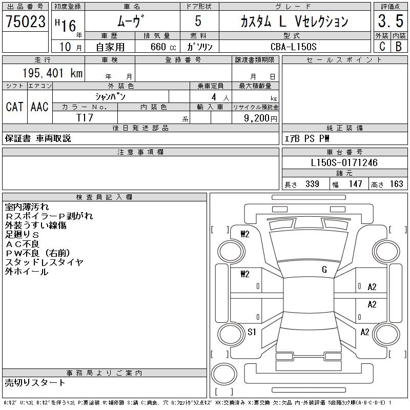 DAIHATSU MOVE CUSTOM L V SELECTION - лот 75023