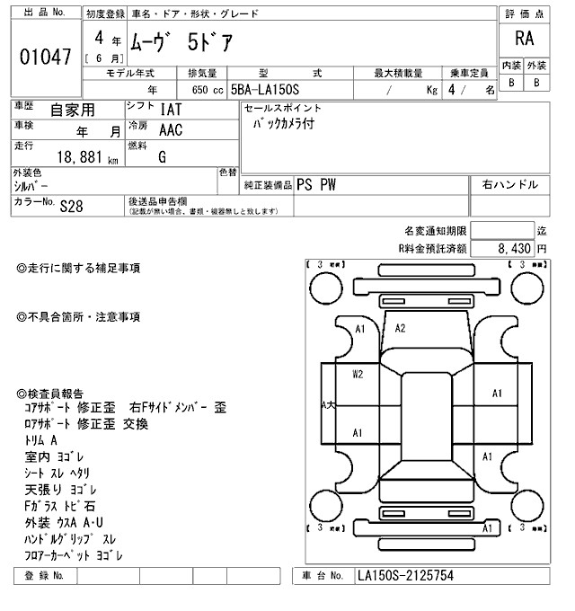 DAIHATSU MOVE CUSTOM XVS SA3 - лот 1047