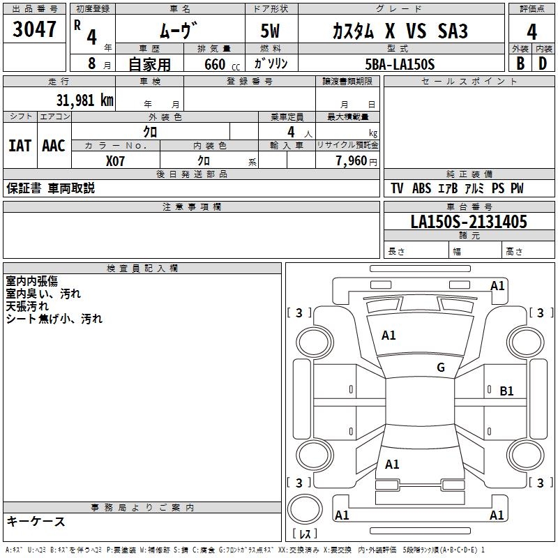 DAIHATSU MOVE CUSTOM X VS SA3 - лот 3047