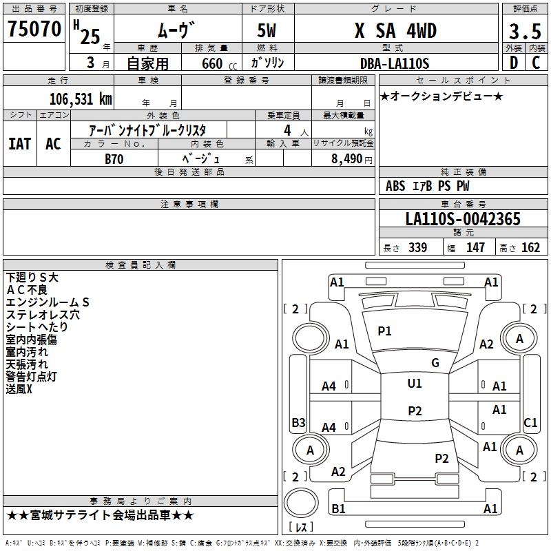 DAIHATSU MOVE X SA 4WD - лот 75070