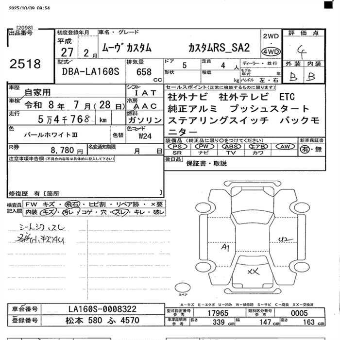 DAIHATSU MOVE 4WD CUSTOM RS SAII - лот 2518