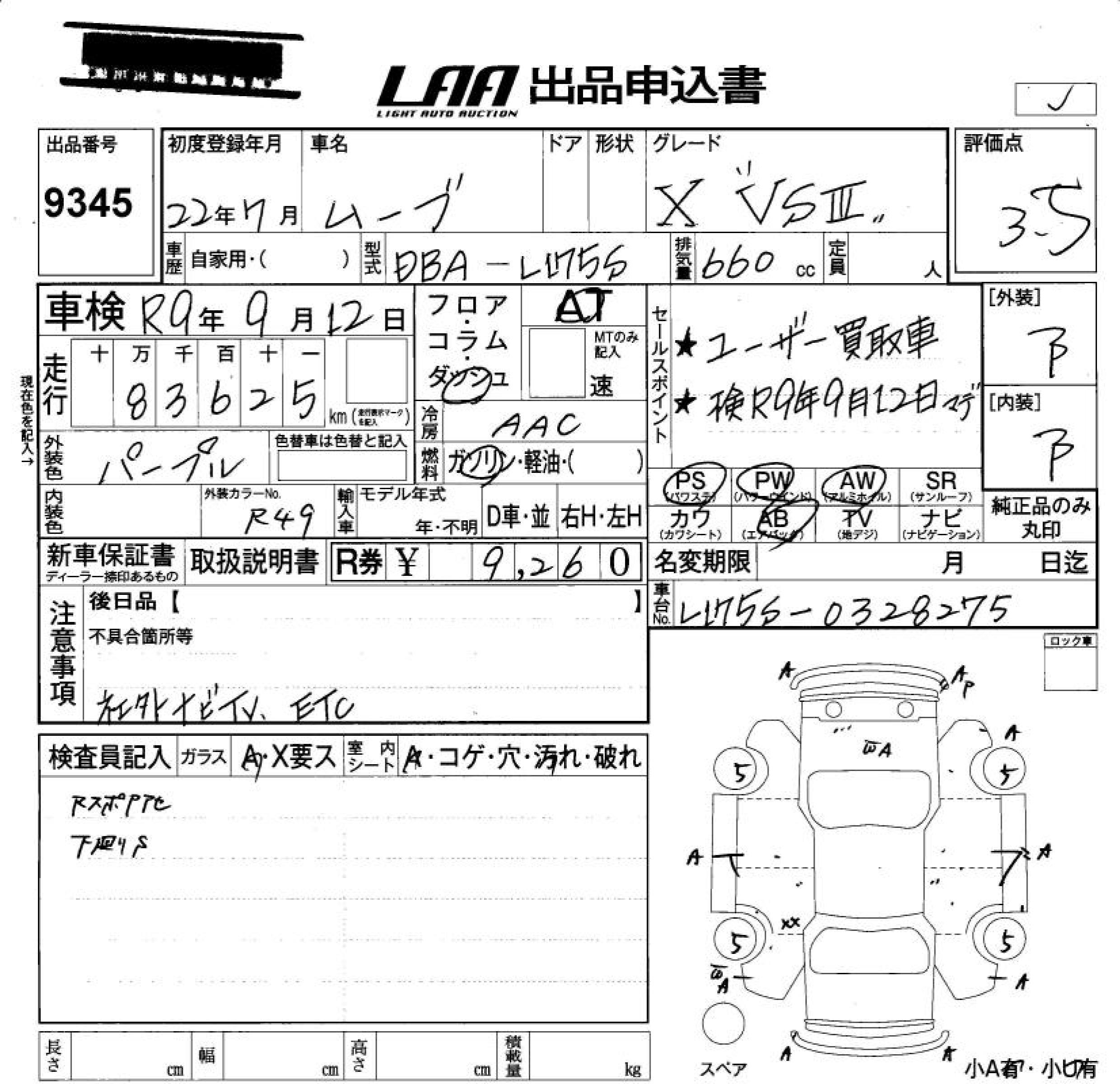 DAIHATSU MOVE X VS . - лот 9345