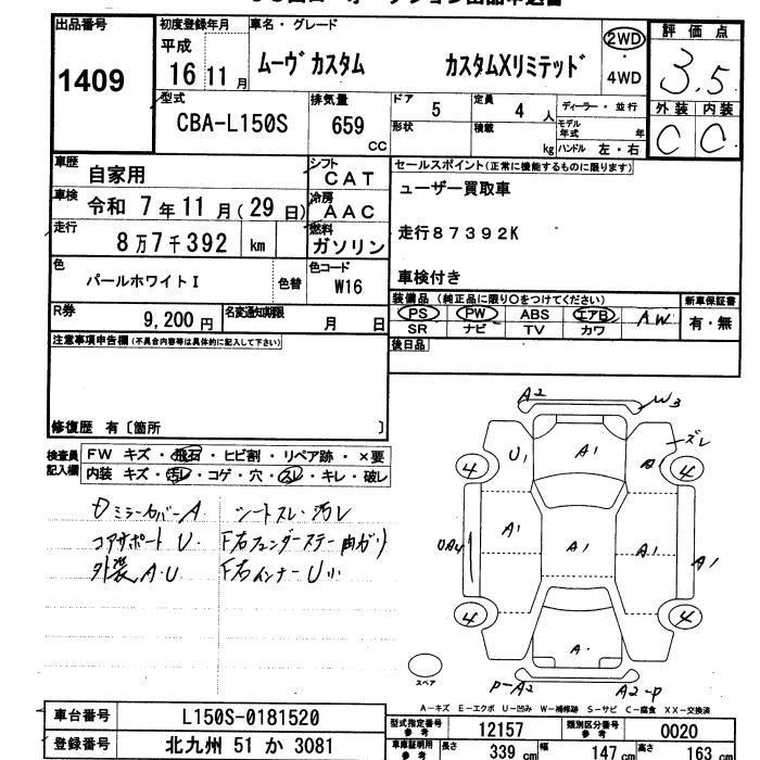DAIHATSU MOVE CUSTOM X LTD - лот 1409