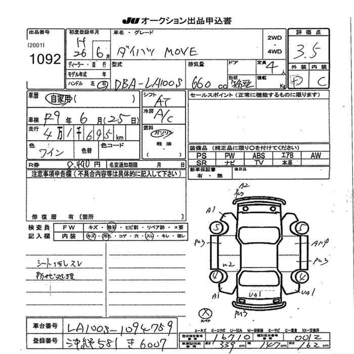 DAIHATSU MOVE - лот 1092