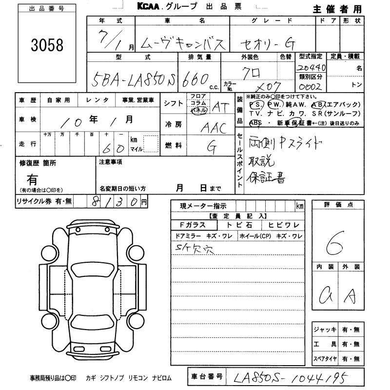 DAIHATSU MOVE CANBUS - лот 3058