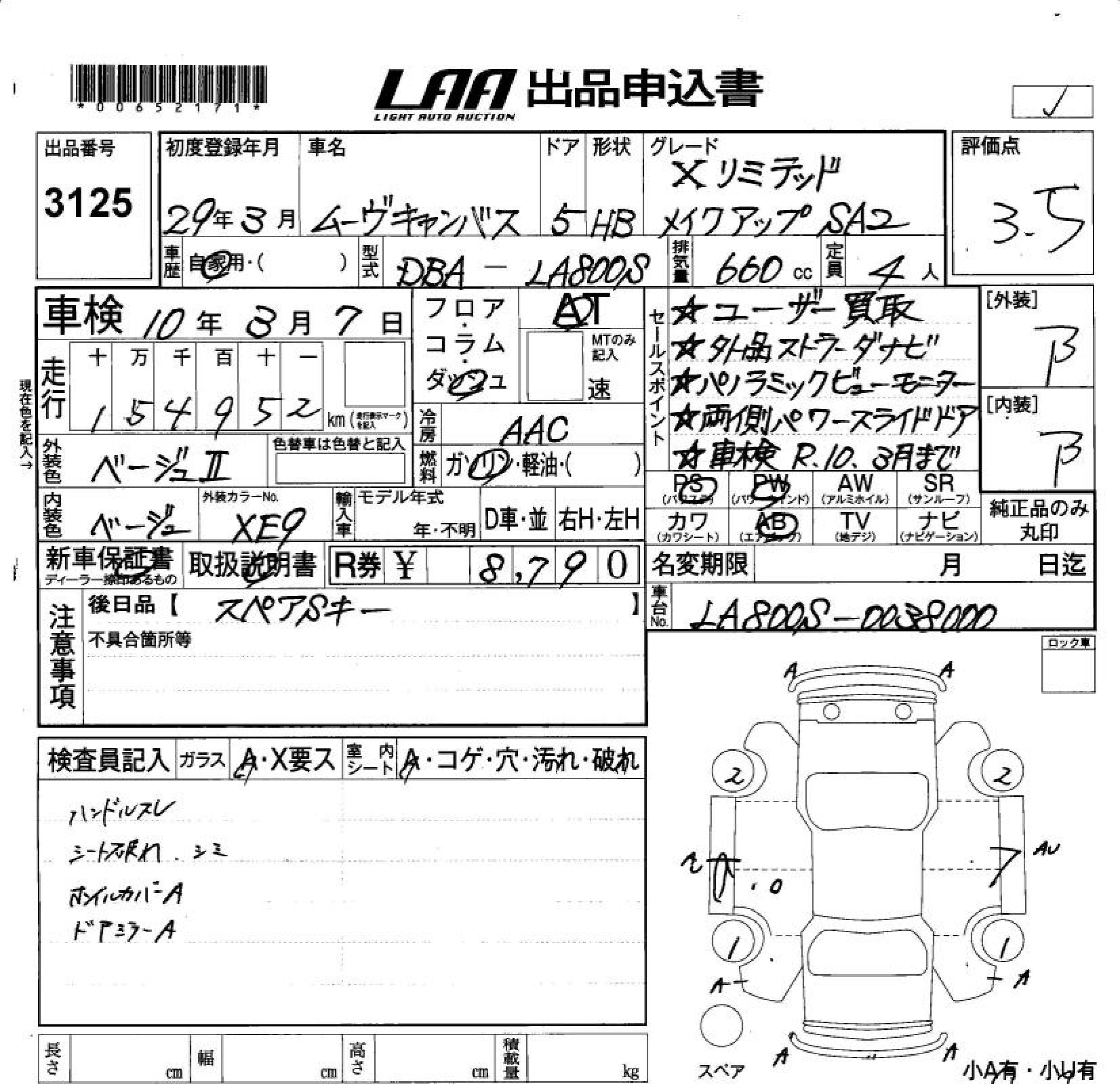DAIHATSU MOVE CANBUS - лот 3125