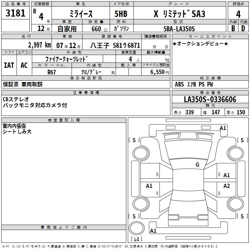 - Кузов: DBA-LA350S