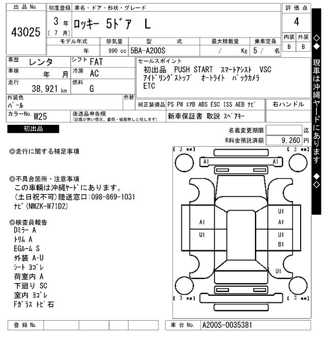 Оборудование: PS PW подушка безопасности ABS ESC ISS расстояние 38,921km депозит уплачен 9,260 иен