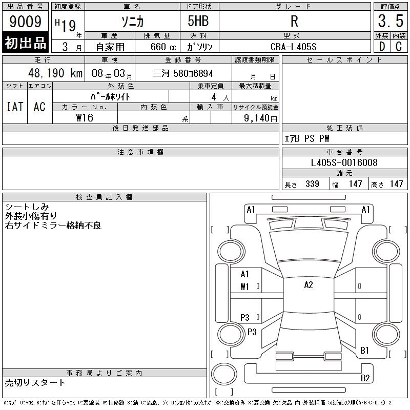 DAIHATSU SONICA R - лот 9009