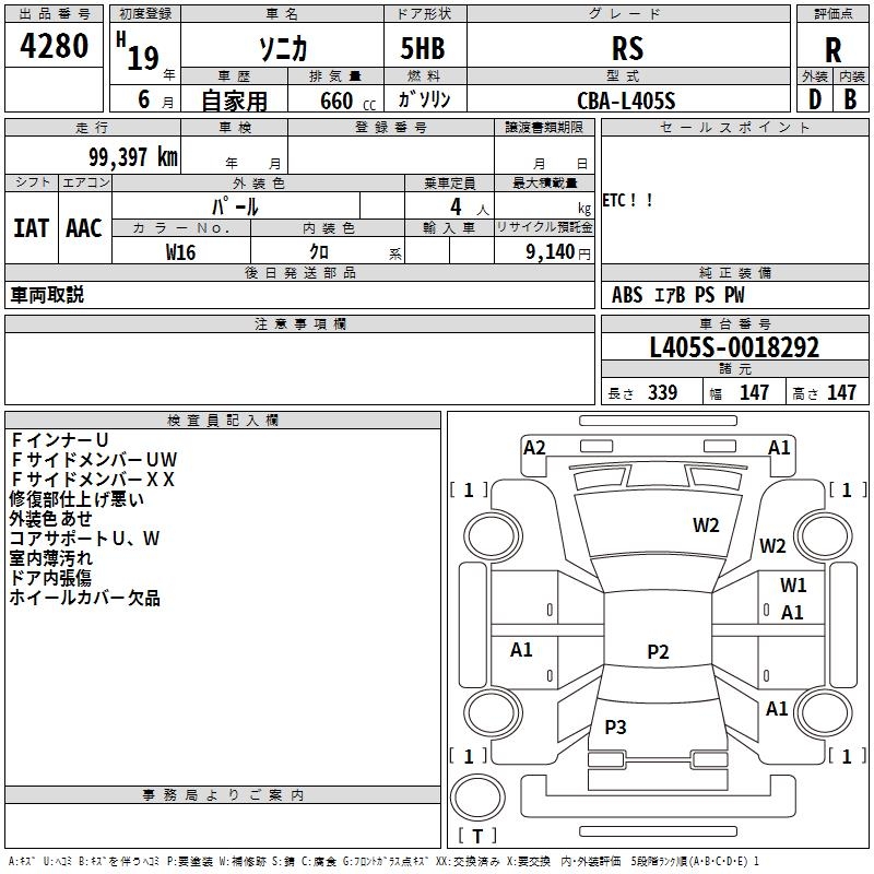 DAIHATSU SONICA RS - лот 4280