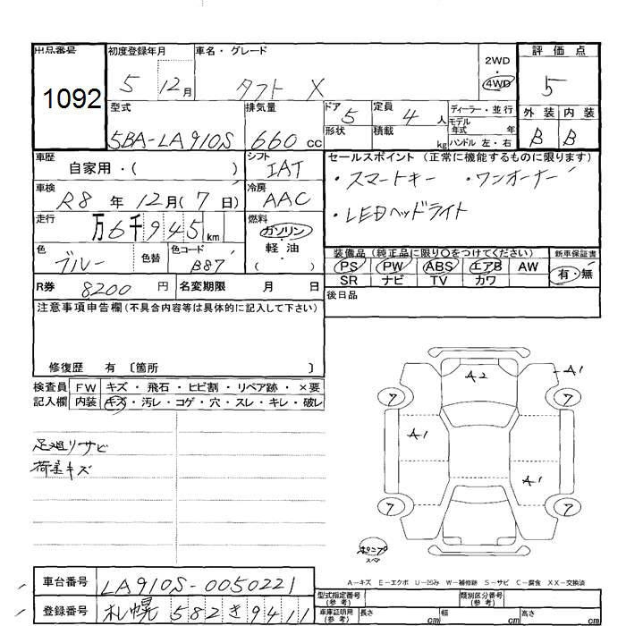 DAIHATSU TAFT 4WD X - лот 1092