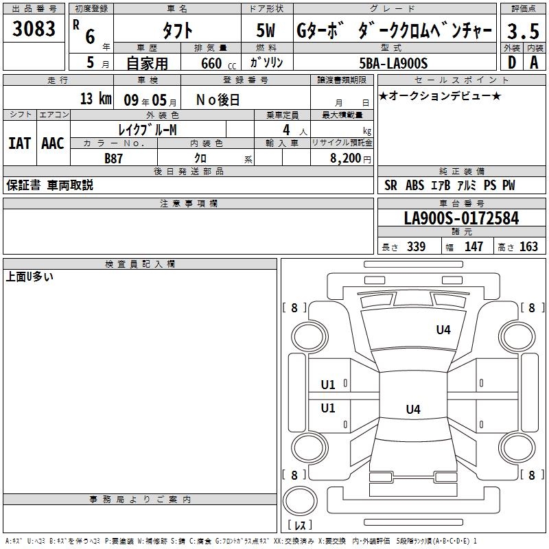 DAIHATSU TAFT G TURBO DARK CHROME BENCH .- - лот 3083
